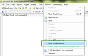 To reset the lay out in SQL Server Management Studio, Select Window Menu and Select Reset Window Layout Option