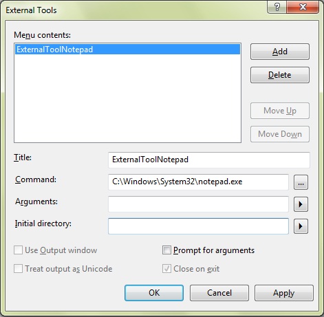 For adding Notepad as an external tool there is no mandate to add Arguments and Initial directory.